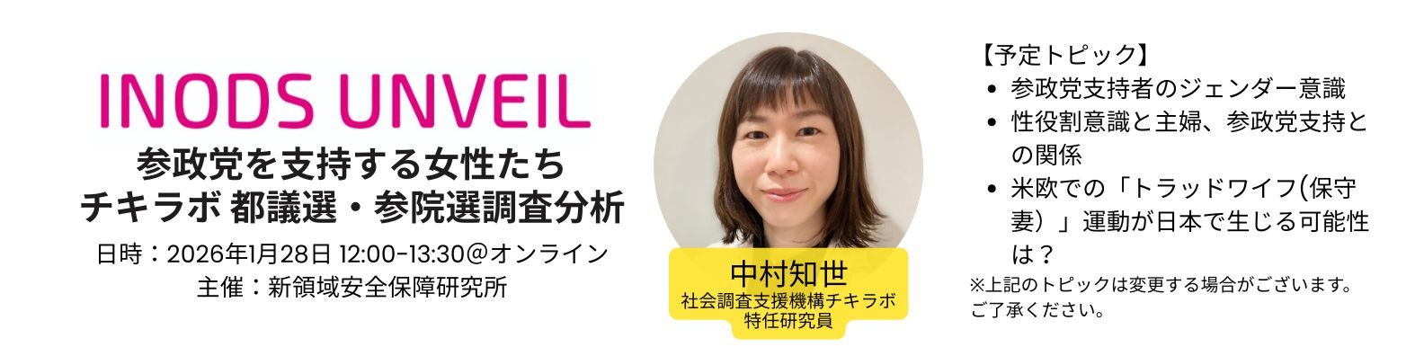*本セミナーでは過去の選挙についての調査分析および、各政党支持者の動向のみとりあげます。