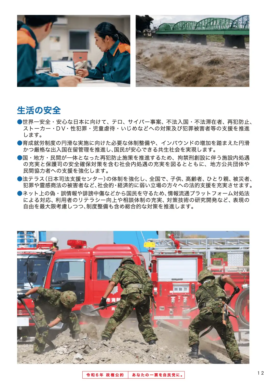 - 憲法改正国民投票法案については、表現・言論の自由に配慮し過度な規制は行わず、国民投票広報協議会等を通じた正確な情報発信によって国民的議論を喚起します。また、ネット上のフェイクニュース等が社会問題化している現状に鑑み、情報リテラシー教育の推進を図ります。