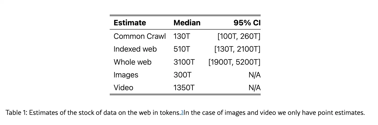 テキスト、画像、ビデオの世界に存在する量の推測(図:「Will we run out of data? Limits of LLM scaling based on human-generated data」から)