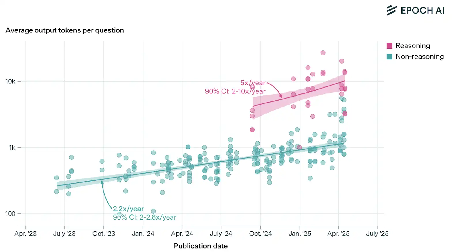 推論時に生成されるトークンの量のトレンド(図:Epoc AIから)
